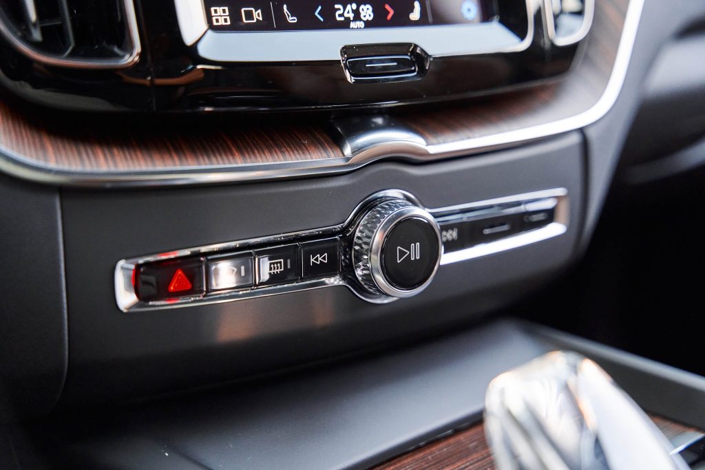 Điểm mới rõ nét nhất trên XC60 Ultimate Dark hiện tại chính là cần số điện tử làm bằng pha lê, được chế tác thủ công bởi hãng sản xuất thủy tinh nổi tiếng Orrefors (đến từ Thụy Điển) với lịch sử hơn 200 năm. Điều hòa độc lập 4 vùng cũng là một điểm nổi bật của XC60 Ultimate sử dụng động cơ B6 Mild Hybrid.