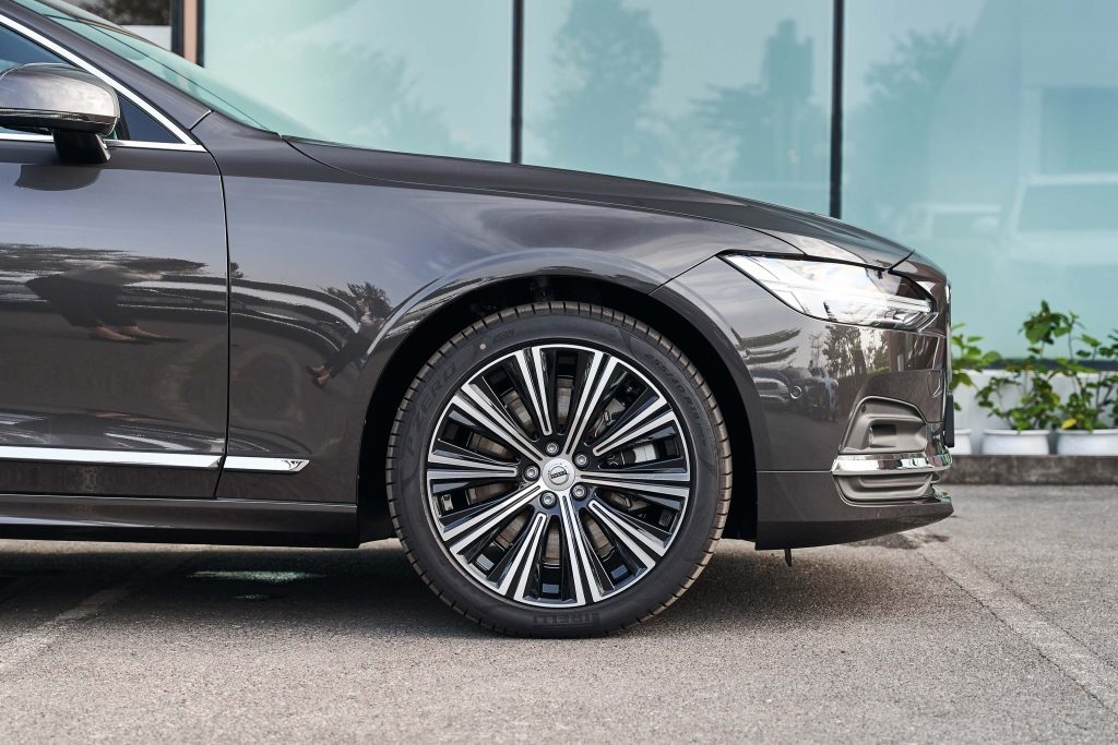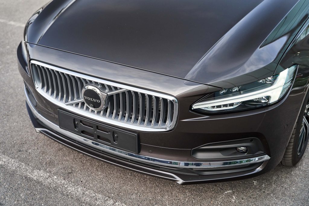Đầu xe nổi bật với cụm lưới tản nhiệt mạ crom cỡ lớn. Hệ thống chiếu sáng sử dụng đèn pha Thor’s Hammer Full-LED Active High Beam. Volvo S90L Ultimate sở hữu bộ mâm 19 inch, đa chấu phay kim cương khỏe khoắn, nhưng không kém phần sang trọng.