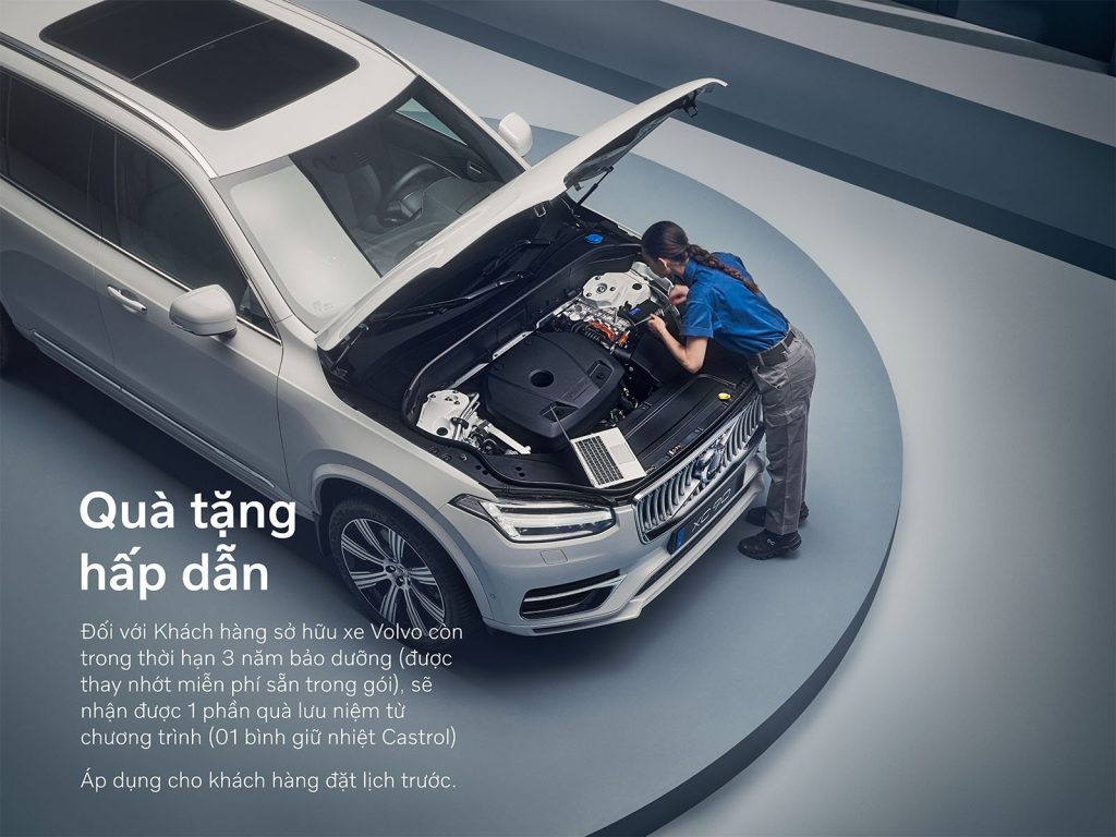 Đối với Khách hàng sở hữu xe Volvo còn trong thời hạn 3 năm bảo dưỡng miễn phí (được thay nhớt sẵn trong gói) đến làm dịch vụ sẽ nhận được 1 phần quà lưu niệm từ chương trình (01 bình giữ nhiệt).