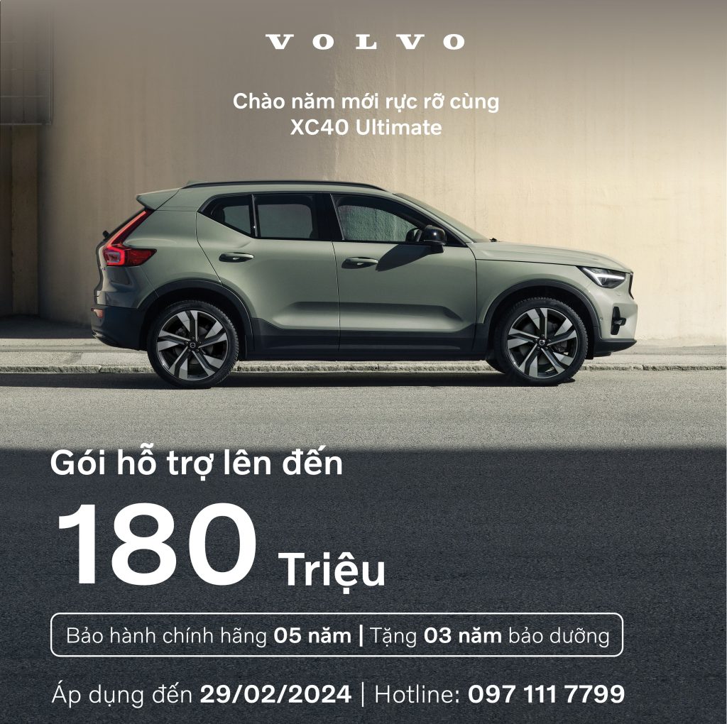 - Từ nay đến 29/02/2024, Quý Khách Hàng sở hữu Volvo XC40 Ultimate sẽ được nhận Gói ưu đãi “XỨNG TẦM ĐẲNG CẤP”