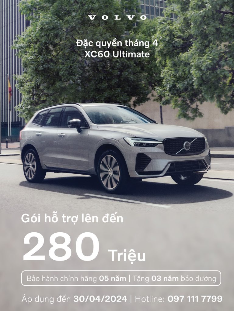 Toàn bộ các mẫu Volvo được đại lý áp dụng gói ưu đãi giá trị cao trong tháng 04, đặc biệt với dòng XC60 – SUV bán chạy nhất của hãng Thụy Điển, mức ưu đãi cao nhất lên tới 290 triệu đồng.