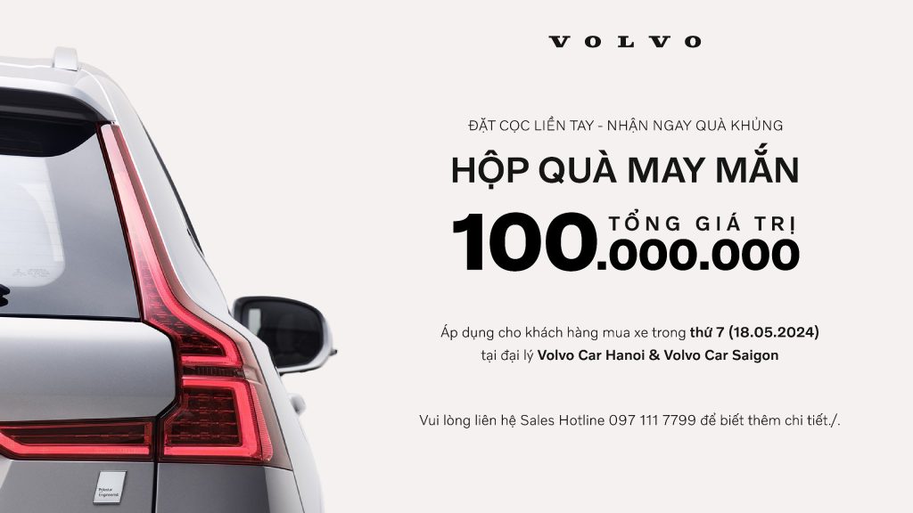 Áp dụng cho Khách hàng đặt cọc mua xe Volvo trong ngày thứ 7 (18.05.2024) tại 2 đại lý Volvo Car Hanoi và Volvo Car Saigon.
